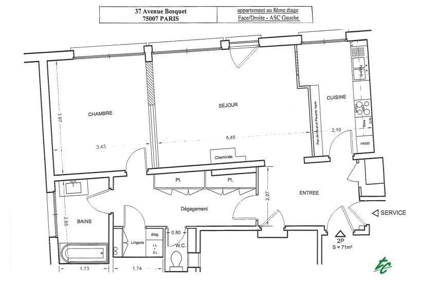 Avenue Bosquet, dans un immeuble des années 60 de très bon standing, à louer un appartement de 2 pièces, clair et en excellent état :