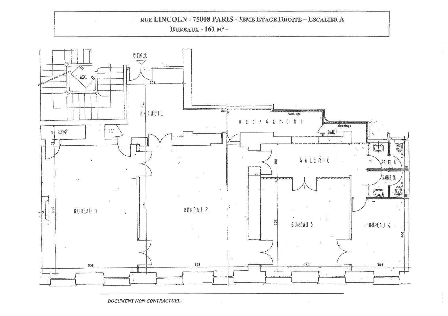 Dans un bel immeuble haussmannien de bon standing, les locaux se répartissent de la manière suivante :