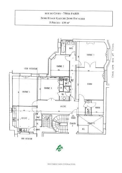 Rue de Civry, dans un immeuble des années 30 de très bon standing, à louer 5 pièces au 2e étage :