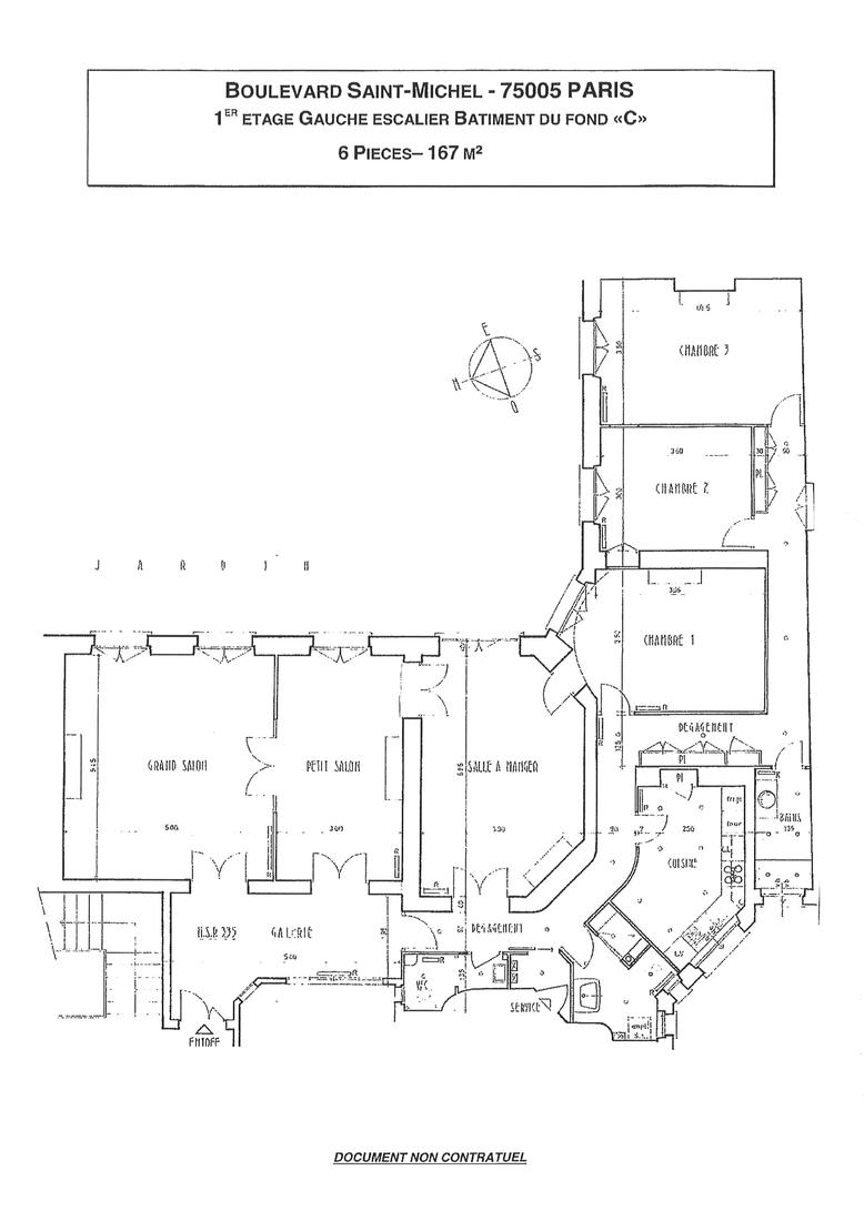 Boulevard Saint Michel, dans un immeuble haussmannien de très bon standing, avec gardien et ascenseur, à louer au 1er étage un appartement de 167 m² :
