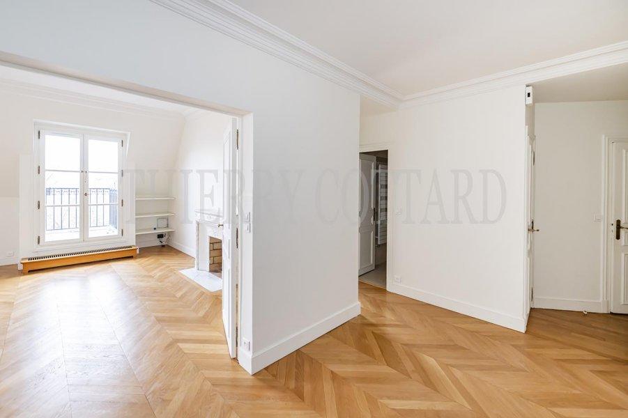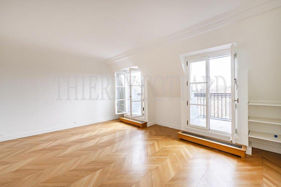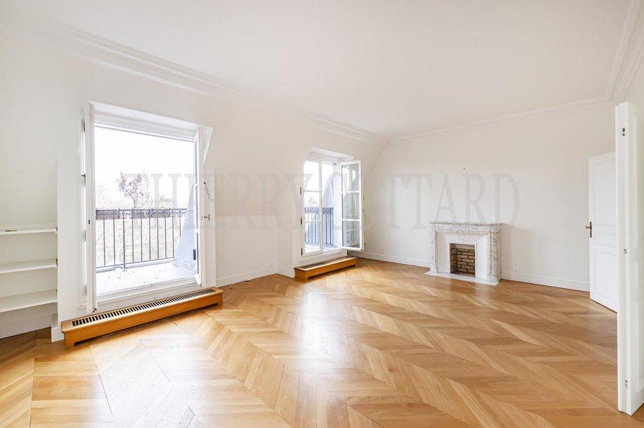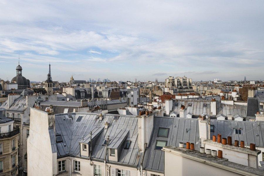 Dans un immeuble ancien de très grand standing, ce bel appartement situé au 6e étage offre de belles vues sur tout l’est et l’ouest de Paris.