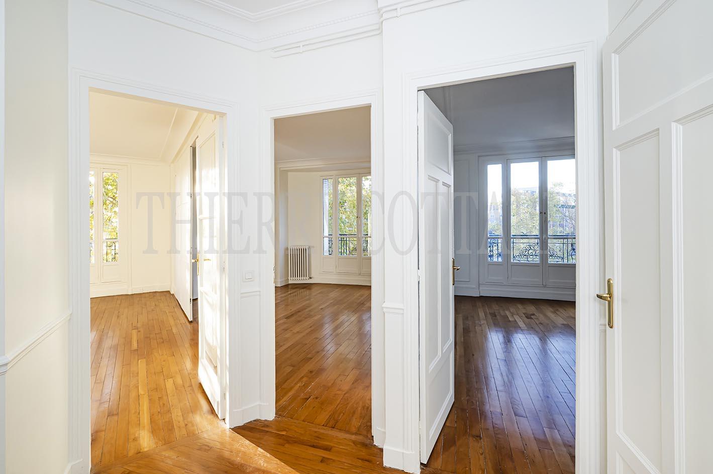 Avenue Stéphane Mallarmé, dans un immeuble ancien de très bon standing et à toute proximité de la Place Champerret, à louer au 3e étage un appartement de 6 pièces en très bon état et repeint :
