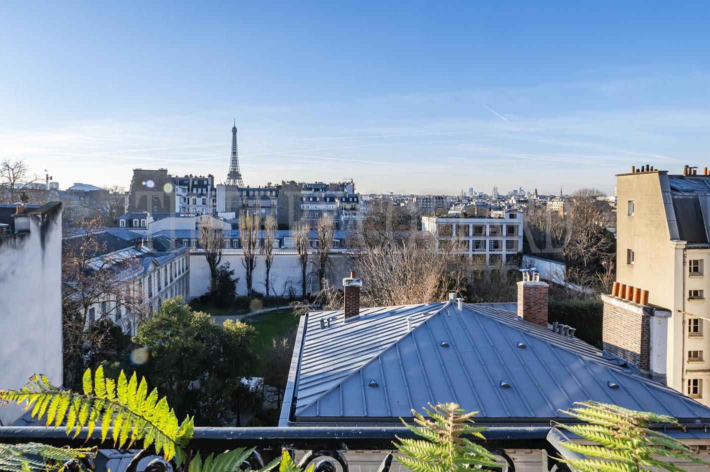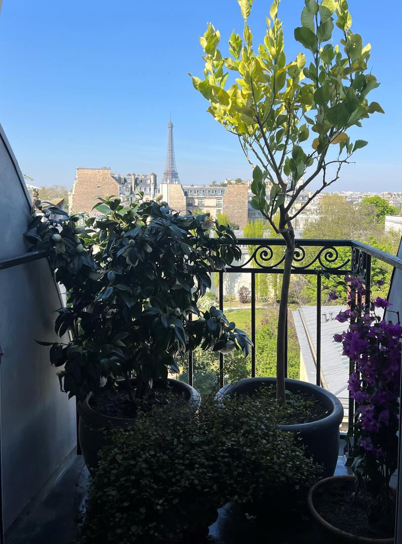 Vues imprenables sur la tour Eiffel, le dôme des Invalides, la basilique Sainte Clotilde et les jardins de l'hôtel de Noirmoutier.