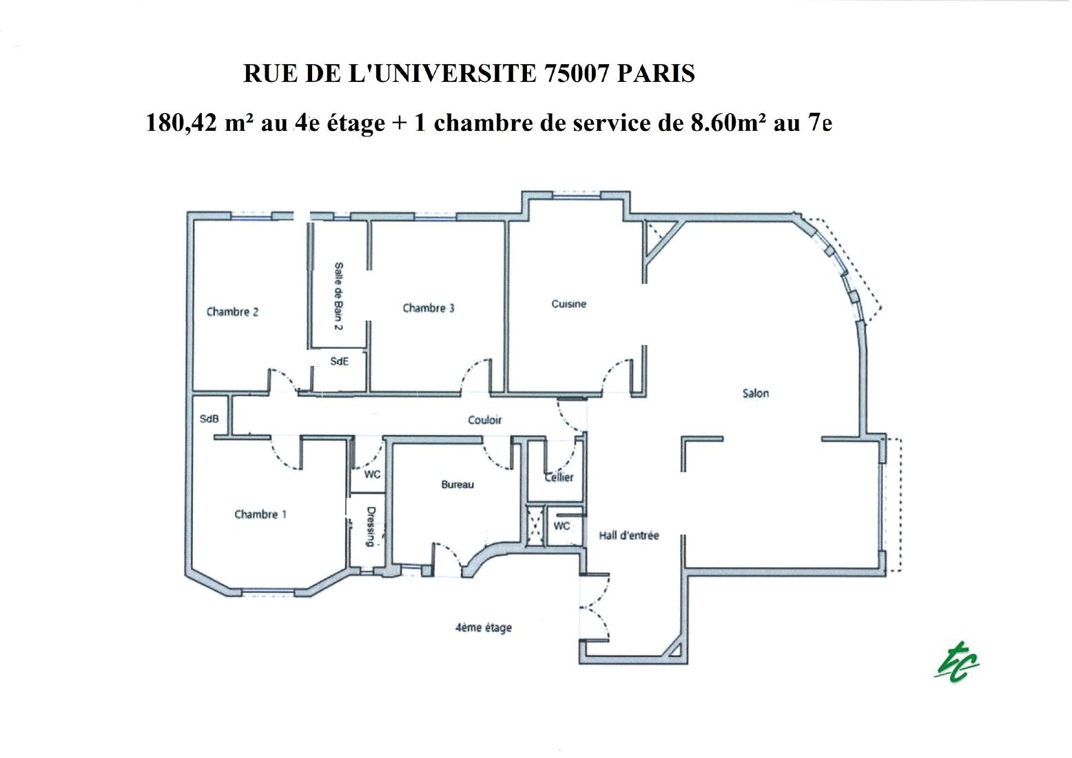 A l'angle des rues de l'Université et Sully-Prudhomme, à toute proximité du Quai d'Orsay et de l'Eglise américaine, appartement situé au 4e étage d'un immeuble des années 30, aux belles parties communes, bénéficiant d'un vaste ascenseur et gardienné.