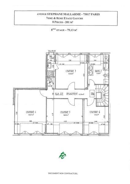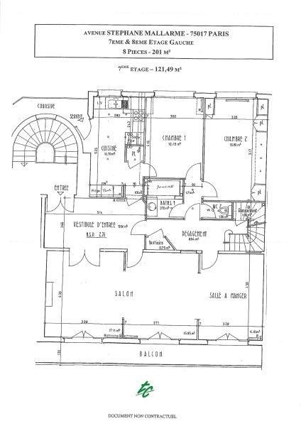 Dans un immeuble ancien de très bon standing, à toute proximité de la Place de Champerret, à louer aux 7e et 8e étages avec ascenseur, un duplex de 8 pièces composé de :